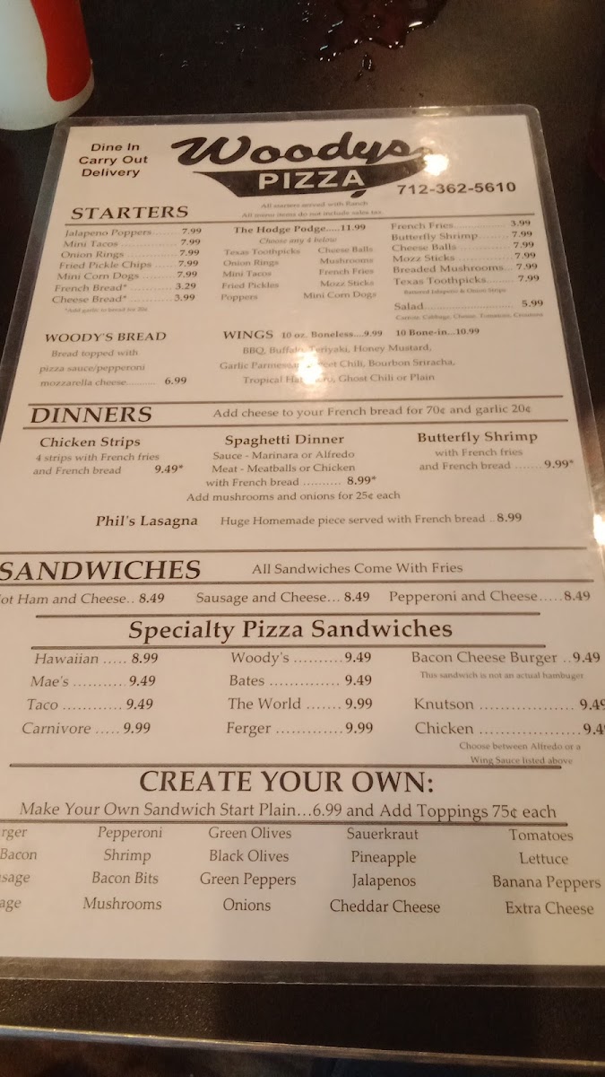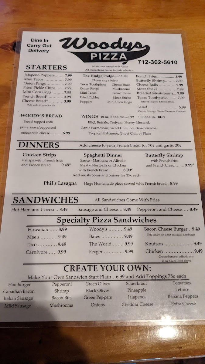 Welcome to Woody's Pizza, a charming family restaurant nestled in Estherville, Iowa. Known for its beautiful wood decor and laid-back atmosphere, Woody's offers an inviting space perfect for gatherings. Customers rave about the phenomenal service, highlighting the attentiveness of staff like Ashlee, who create a welcoming dining experience.
